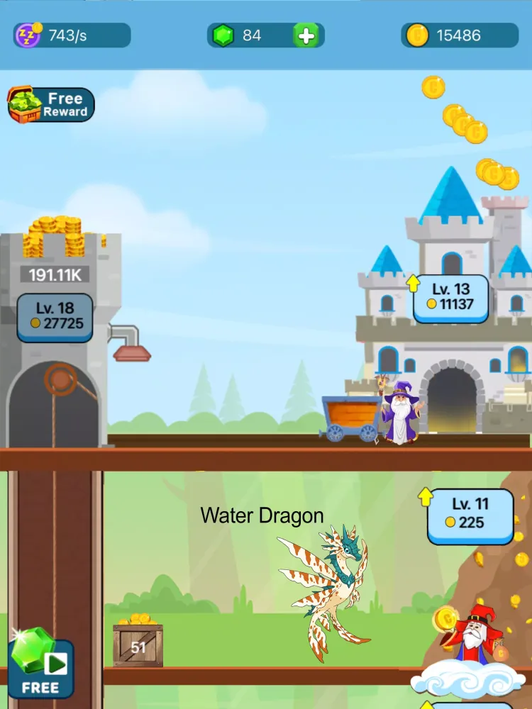 - Rich Rewards: Become the ultimate gold coin mining wizard by mastering your dragon kingdom.