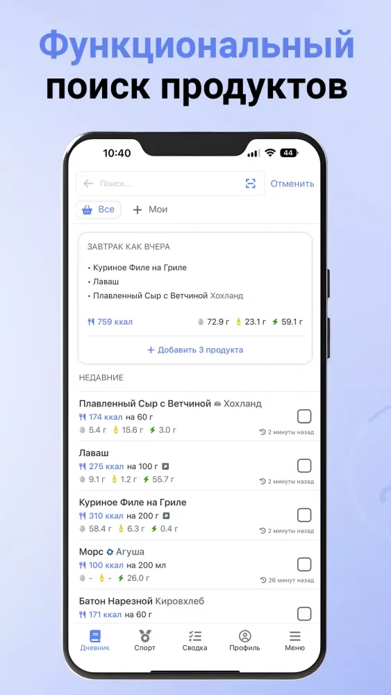 Description of the TASAGER Calorie Counter and Nutritional Tracker (KBZHU)