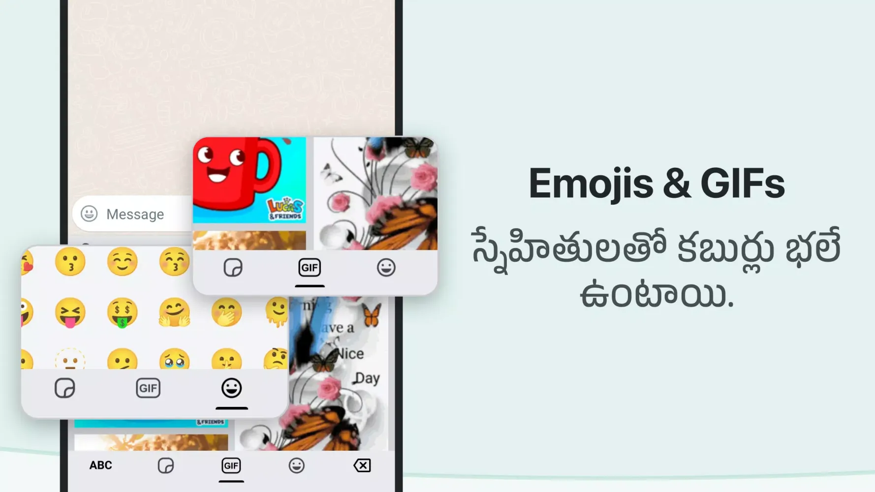 Enhance your conversations with fun and engaging features such as animated GIFs and emojis. Accessible through a dedicated button on the keyboard, these elements allow you to add a touch of personality to your messages. Whether you want to send a funny animation or a heartwarming good morning message, the Telugu GIF keyboard has got you covered. Press and hold the emoji key to explore a wide range of Telugu emojis, adding another layer of expressiveness to your communications.