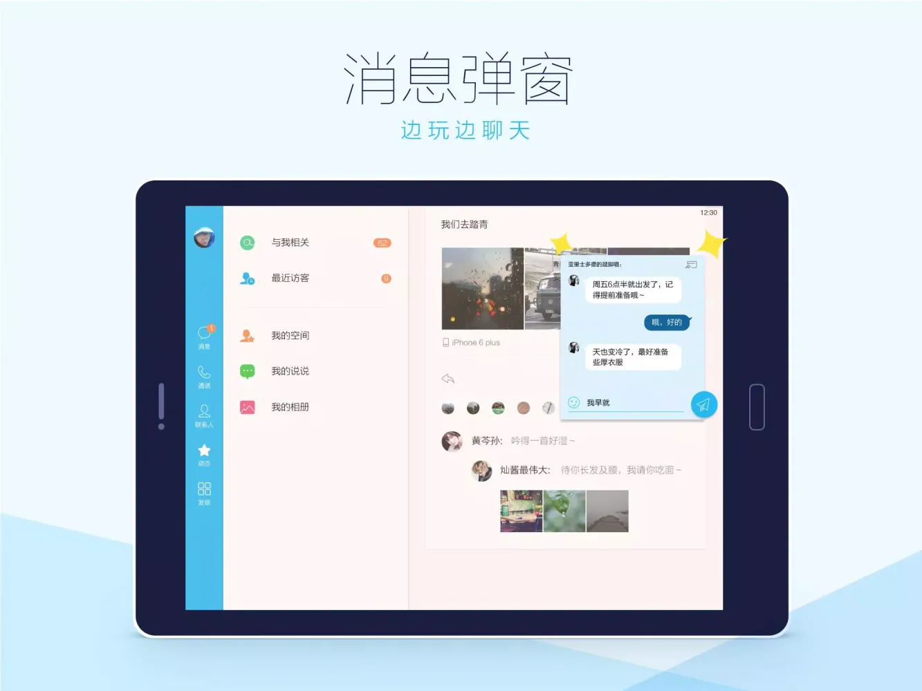 Fitur Sosial: QQ HD bukan hanya untuk pesan; ia juga mengintegrasikan elemen-elemen media sosial. Bagikan pengalaman, pembaruan, dan foto melalui ruang QQ pribadi Anda dan terhubung dengan masyarakat yang lebih luas.