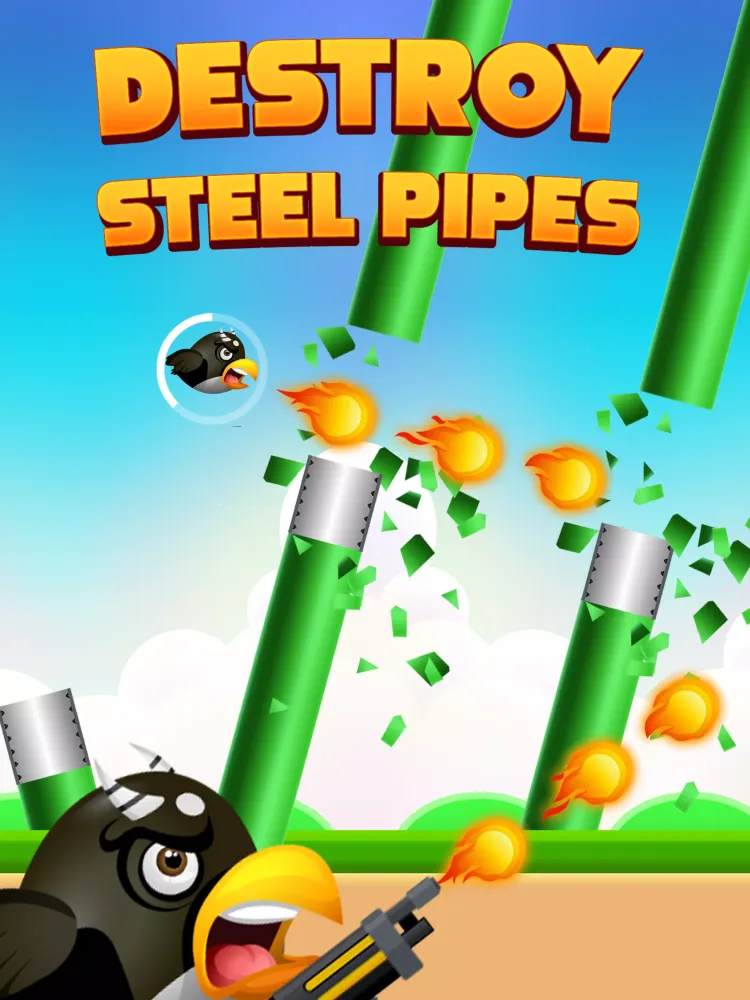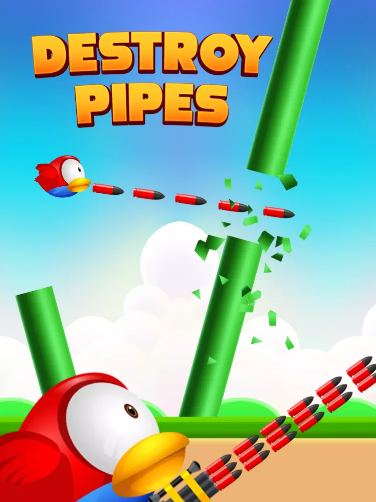 Take control of a daring bird equipped with the power to shoot down obstacles. Clear the path by destroying pipes and barriers to advance through each level. It's not just about flying; it's about clearing the way to victory! -