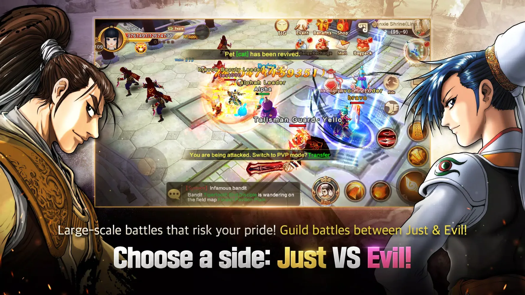 - PvP: Engage in faction warfare in the Battle of Justice and Evil.