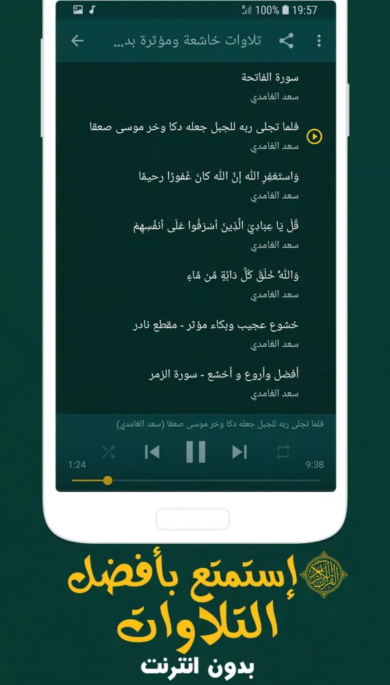 The app contains recitations that are both humble and powerful, delivered in the distinctive and soothing voice of Saad Al-Ghamdi. These recitations are meant to enter the heart effortlessly, bringing a sense of peace and reflection. It is hoped that these recitations will be greatly appreciated and cherished by all who listen.