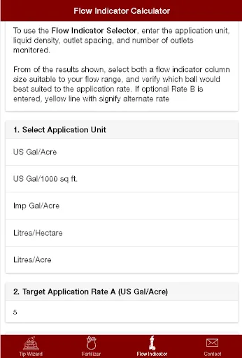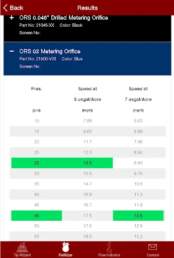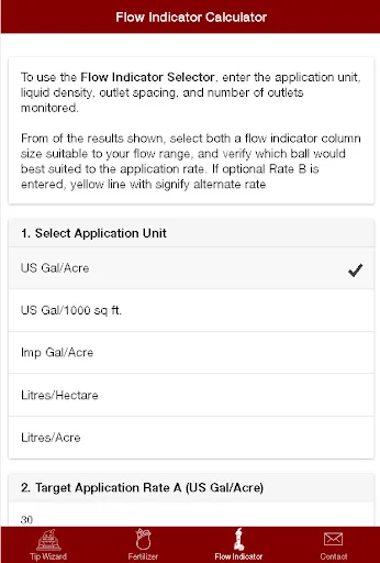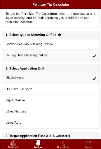 Some newer features to Tip Wizard are the ability to select fertilizer streamer nozzle and visual flow indicator metering orifices within the app itself.