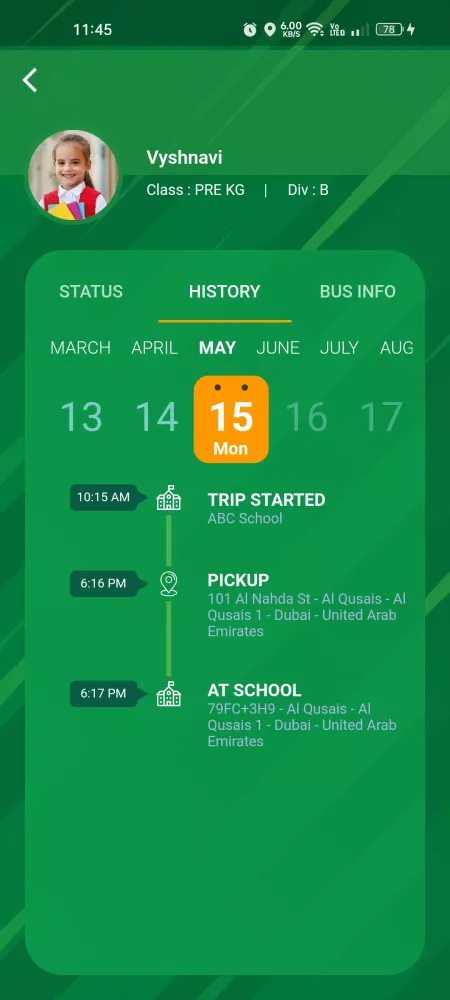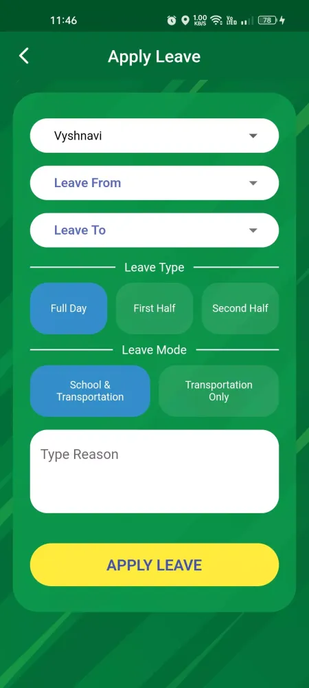 Managing your child's attendance has never been easier. The app offers flexible options for marking absences, whether it's the first half, second half, or the entire day. You can effortlessly communicate these absences to the school and bus coordinators, ensuring seamless coordination and efficient attendance management.