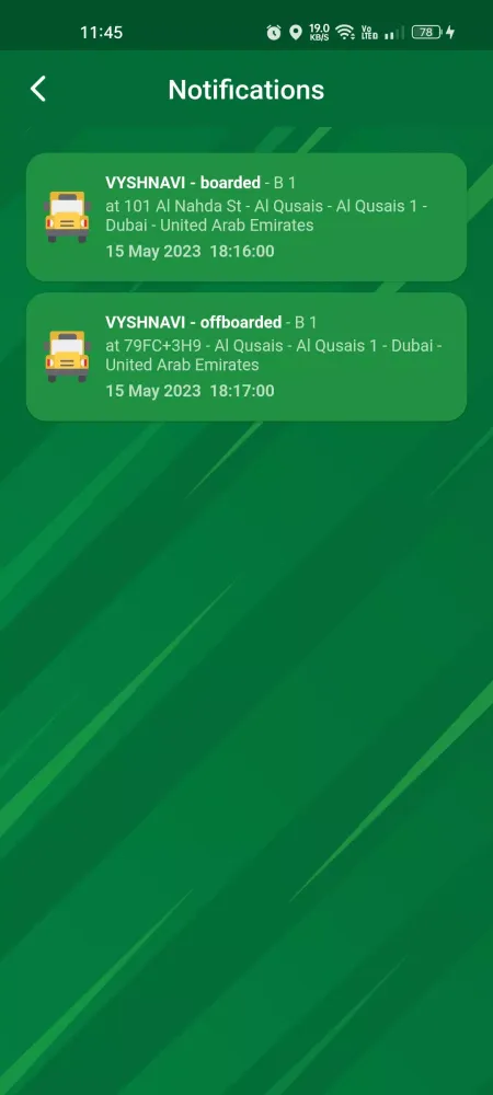 With the NexGen Parent App, you receive real-time push notifications that keep you updated on crucial milestones such as the start of the trip, boarding, and disembarking of your child from the bus. These notifications provide peace of mind by ensuring you are always aware of your child's whereabouts and safety throughout their commute.