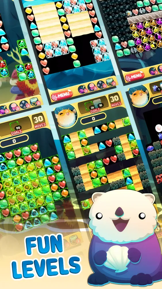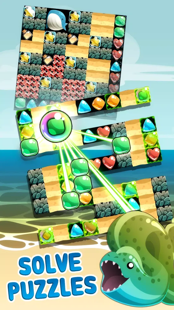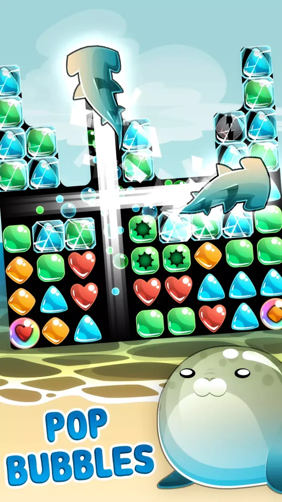 - Shark Bubble: Pop long rows and columns of bubbles and debris.