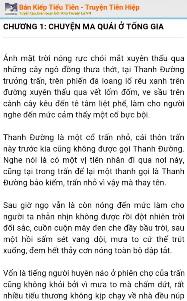 If you're a fan of Immortal Cultivation novels but find it cumbersome to carry around thick books wherever you go, then we have just the solution for you! At Kho Truyen Le VN, we've developed an application that allows you to enjoy your favorite Immortal Cultivation stories with just a tap on your smartphone. Simply head over to the Google Play Store, search for Kho Truyen Le VN, and you'll be greeted with a wide variety of Immortal Cultivation stories in different genres.