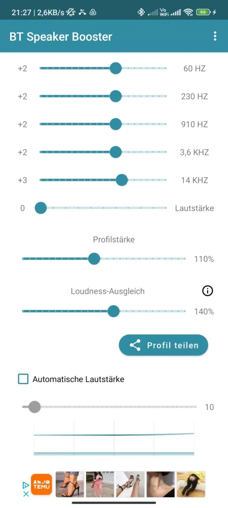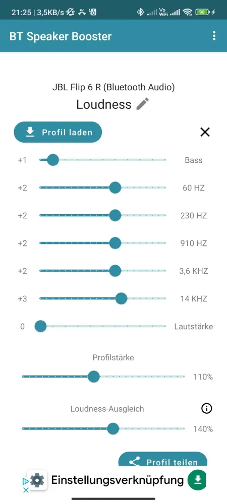 But the magic doesn't stop there. Bluetooth Speaker Booster goes above and beyond by allowing you to create custom equalizer profiles for each of your devices. This means you can fine-tune the sound exactly how you like it, whether you prefer deep bass or crystal-clear highs. Additionally, you have the flexibility to adjust the profile strength for individual devices, giving you complete control over the balance between sound quality and volume.