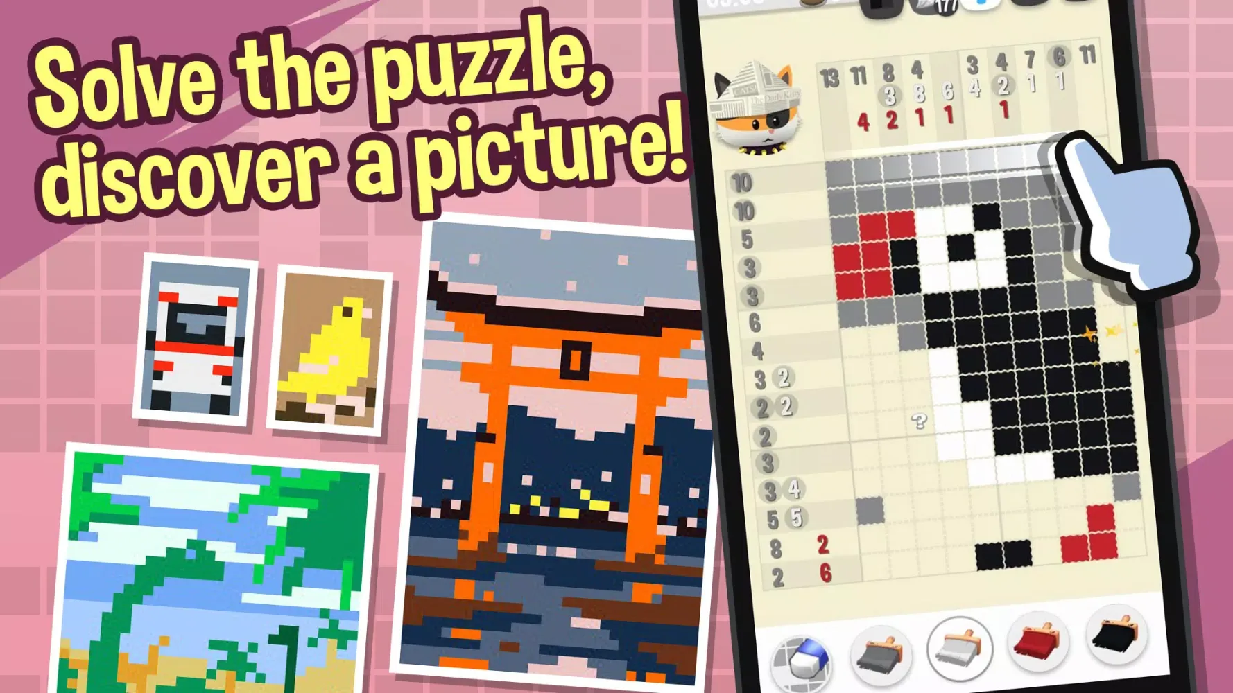 Discover Hidden Pixel Art with Hungry Cat Nonogram Color!
