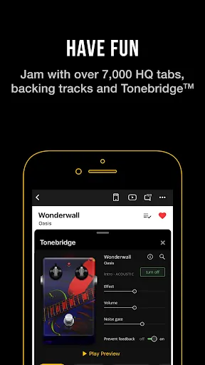 Play 15,000+ popular songs in their original sound with Tonebridge Guitar Effects.
