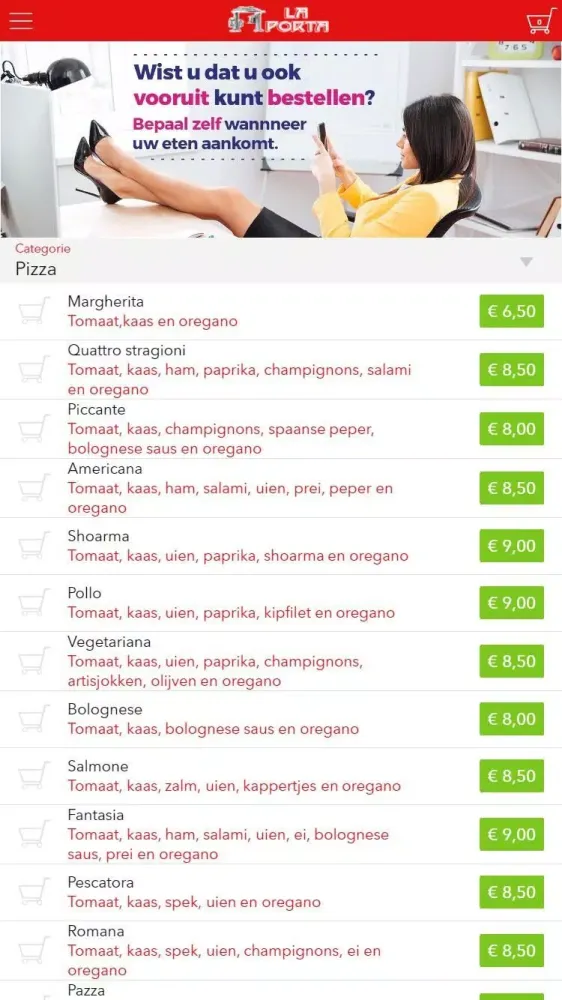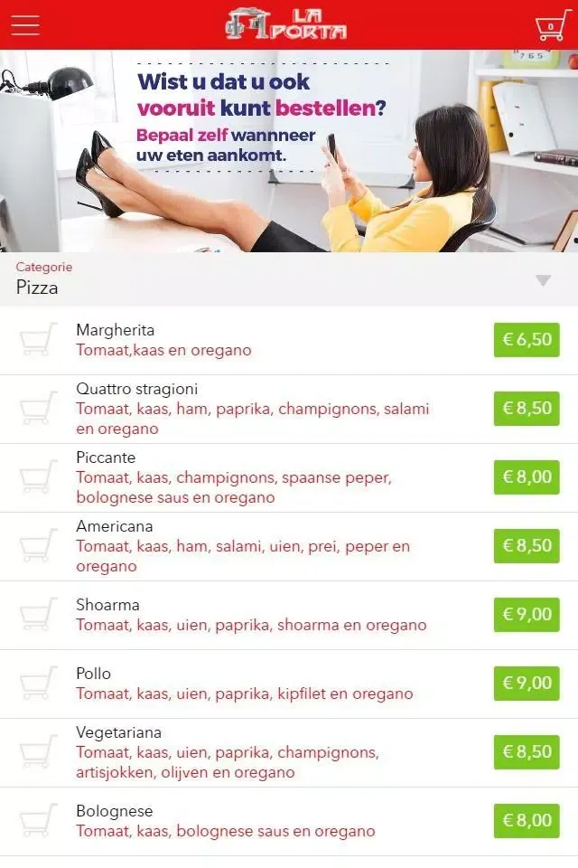 Experience the convenience and speed of placing your orders with the Pizzeria La Porta app! Designed specifically to simplify and expedite your ordering process, this app offers a user-friendly menu that allows you to choose from popular dishes or create your own custom menu.