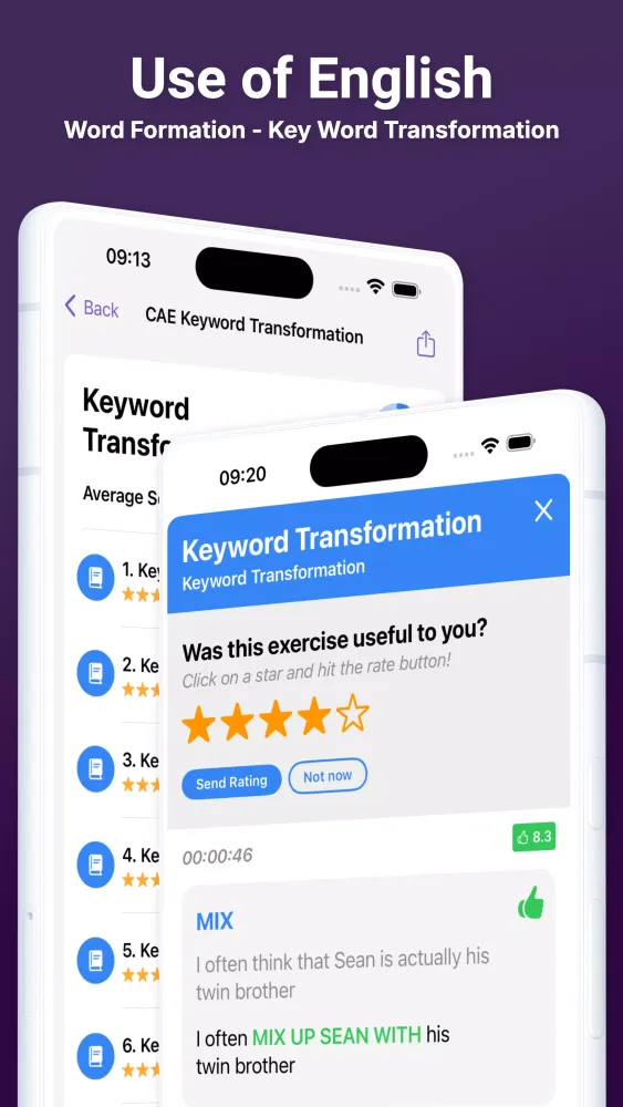 We understand the importance of comprehensive coverage when preparing for such critical exams. That's why Use of English PRO includes not just the FCE (B2) level but also the CAE (C1) and CPE (C2) levels. This makes it the most extensive resource available, covering more exams than any other app or website out there. Whether you're aiming for B2 or C2, you'll find everything you need right here.