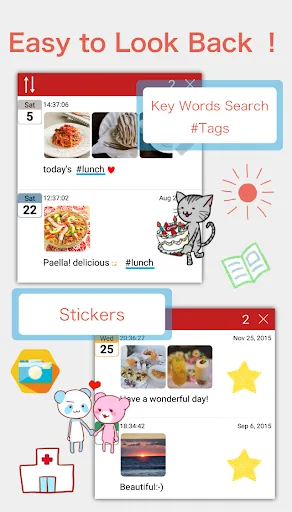 You can take a short note and use it as a private diary, simple business note, diet record, food log, lifetime recording...etc.