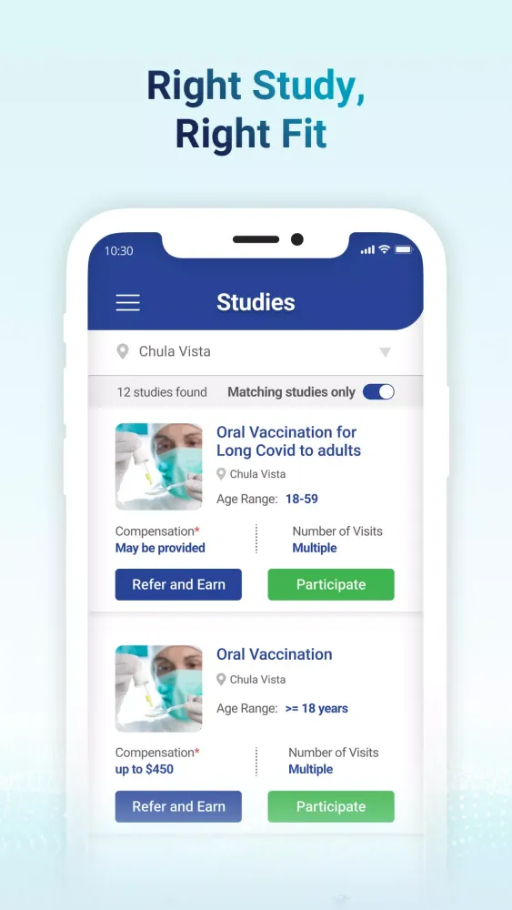 Instantly access a curated list of study opportunities tailored specifically for you. With VISION Engage, you'll never miss out on groundbreaking research that aligns perfectly with your interests and needs.