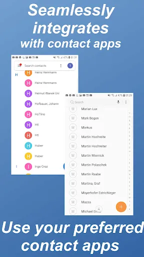 ⊛Seamless integration with your device and your preferred contact apps