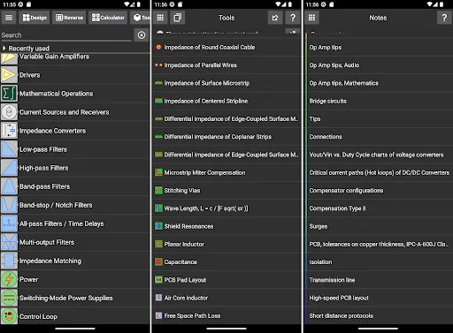 180+ circuits for design, 70+ electronics calculators, 20+ Application Notes, Logic Solver.