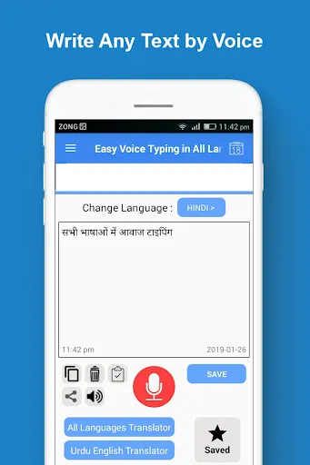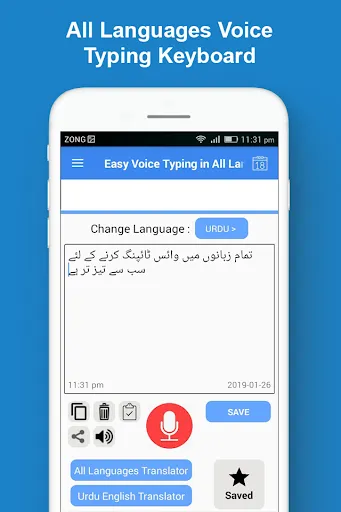 Easy all languages voice typing app allows you to type and save text by your voice in all languages of the world. With the amazing feature of this fast app, you can convert any English or other language audio or speech into text. You can also save this text as speech note entry in the saved section of this app.