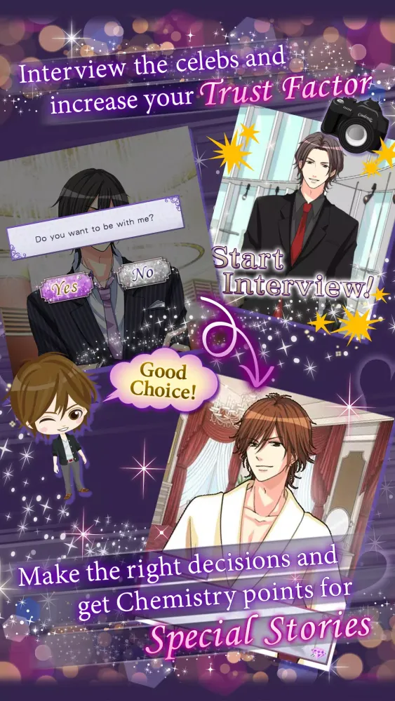 The storyline unfolds as you navigate Tokyo's social scene, covering the glamorous world of celebrities. One fateful night at a casino gala leads to an unexpected twist—waking up in a stranger's hotel room with no memory of the previous evening. This intriguing premise sets the stage for your new career as a gossip reporter, where every interview brings you closer to unraveling secrets and forming bonds with the stars. Alongside the main plot, the game offers additional content such as styling your avatar with trendy outfits and accessories, ensuring you look fabulous while pursuing your dreams.