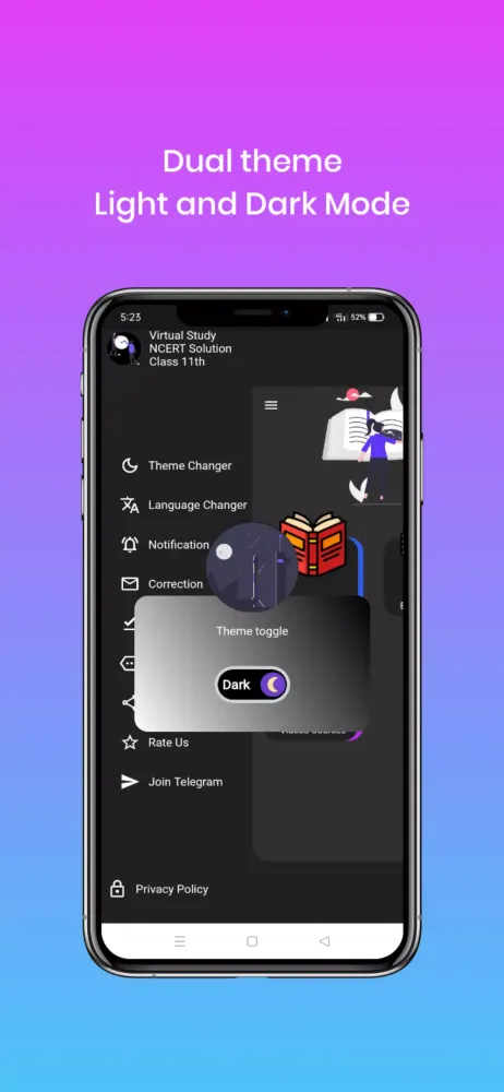 - Dark and Light Modes: The app includes a dual theme feature with dark and light modes for comfortable reading in various lighting conditions.