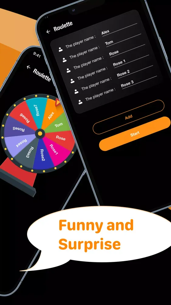 Roulette: Users can enjoy the classic roulette experience by pressing the spin button and watching the wheel elegantly rotate until it lands on a random section. This feature adds an element of excitement and anticipation, making it perfect for gaming activities or spontaneous decision-making.