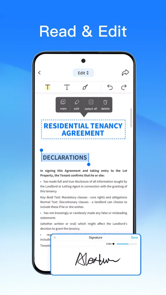 - Reading and Management: Read PDFs, add bookmarks, and perform searches.