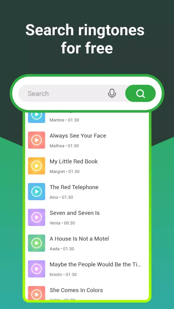 Browse through a vast collection of high-quality ringtones from various genres, including pop, rock, hip-hop, classical, and more. Discover hit songs and catchy tunes to personalize your incoming calls and notifications. With regular updates, you'll always have access to the latest and greatest tracks to keep your device sounding fresh.