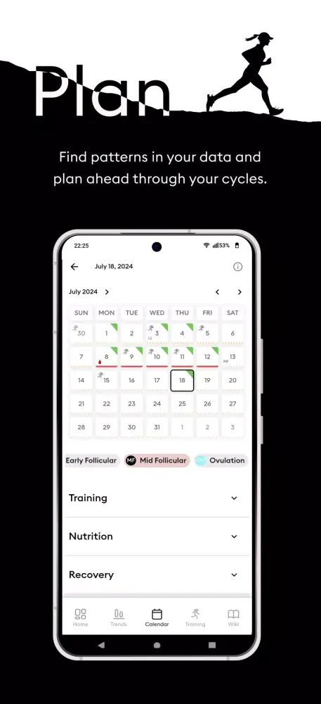 For those who prefer structured routines, Wild AI offers intermediate running training plans that can be synchronized with your cycle. If you already have an established workout regimen, the app also serves as a valuable resource to complement your existing efforts. Furthermore, integrating Wild AI with popular fitness trackers such as Oura, Fitbit, Garmin, TrainingPeaks, and Strava streamlines your data management, providing a comprehensive overview of your progress.