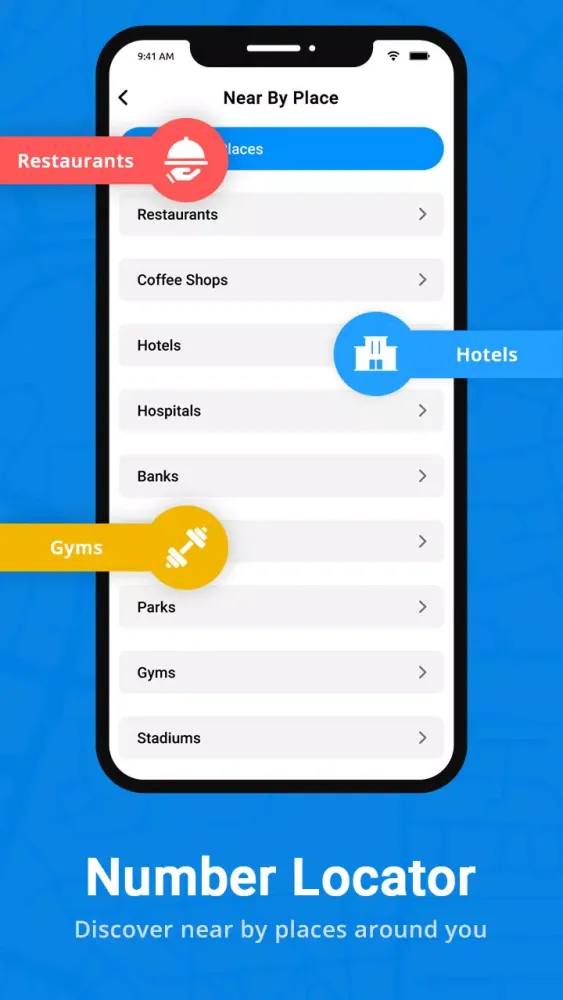 - Nearby Places: Find nearby locations such as airports, jewelry stores, libraries, ATMs, bakeries, beauty salons, bus stations, cafes, gyms, and more.