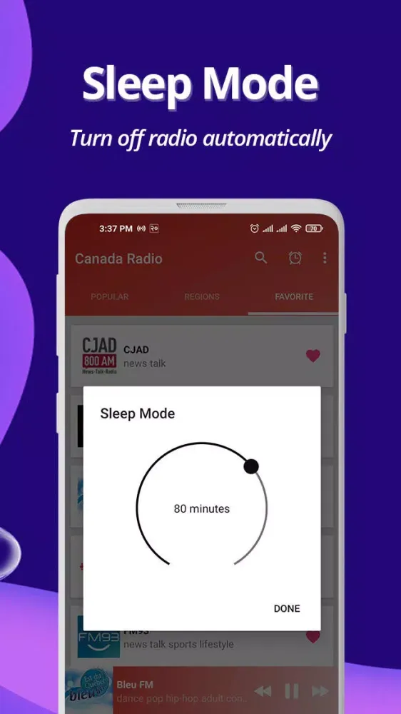 Another standout feature is the app's regional categorization, allowing users to explore Canadian radio stations by province or territory. From Alberta to Yukon, each region presents unique audio offerings that reflect its cultural identity. The inclusion of tools like sleep timers and sharing functionalities via social media platforms adds convenience and connectivity to the overall experience. Moreover, the ability to pause, play, and stop FM radio functions gives users full control over their listening sessions.