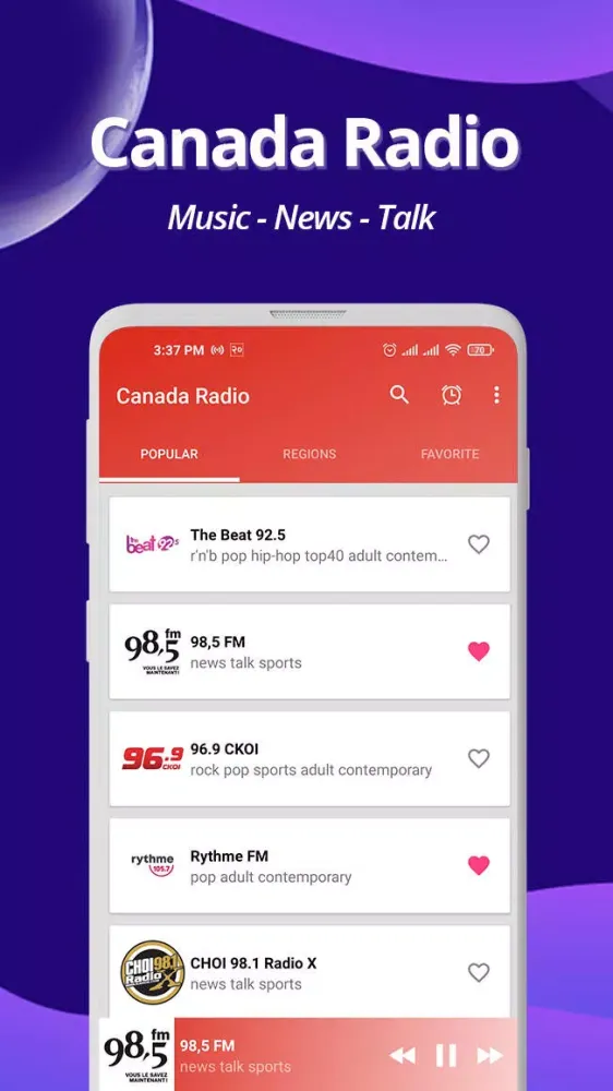 Are you looking to immerse yourself in the diverse sounds of Canada? Whether you're a fan of upbeat music, engaging talk shows, or the latest news updates, Canada Radio is here to offer an unparalleled experience. As a comprehensive radio application designed for Android users, it allows you to access almost all FM and AM radio stations across Canada directly through your smartphone. With its sleek design and intuitive interface, Canada Radio ensures that tuning into your favorite Canadian stations is as effortless as it gets.