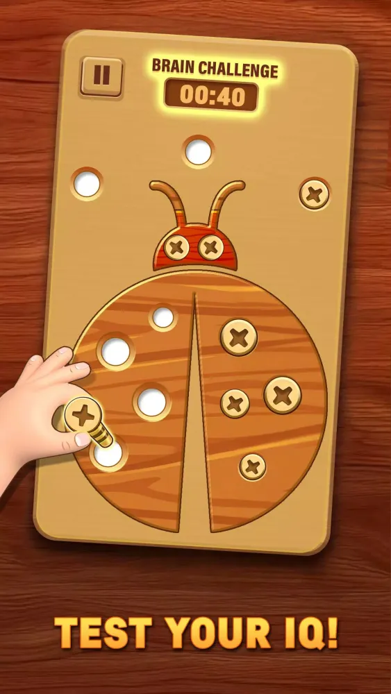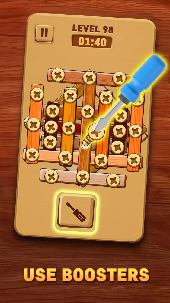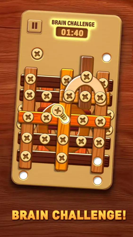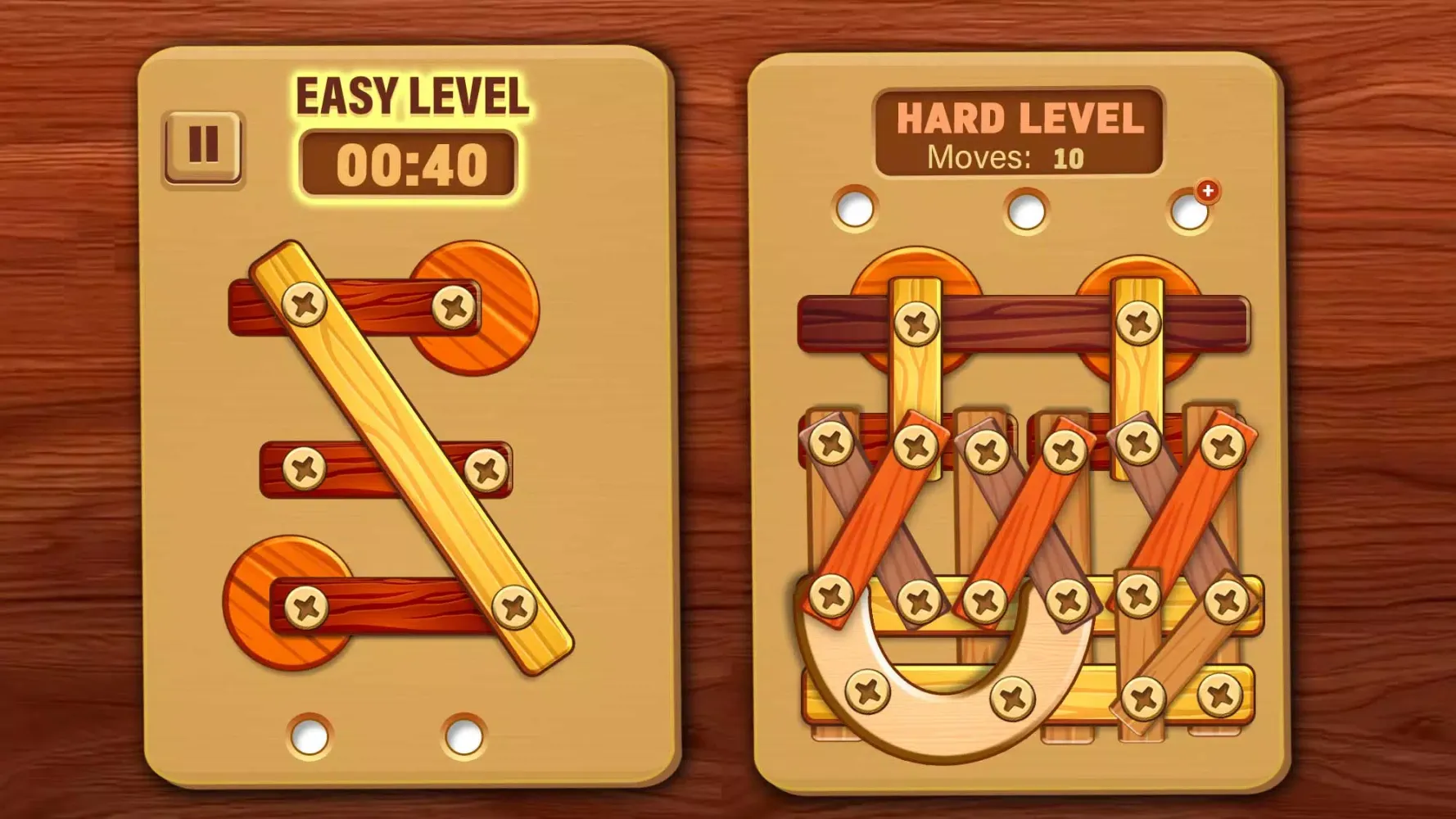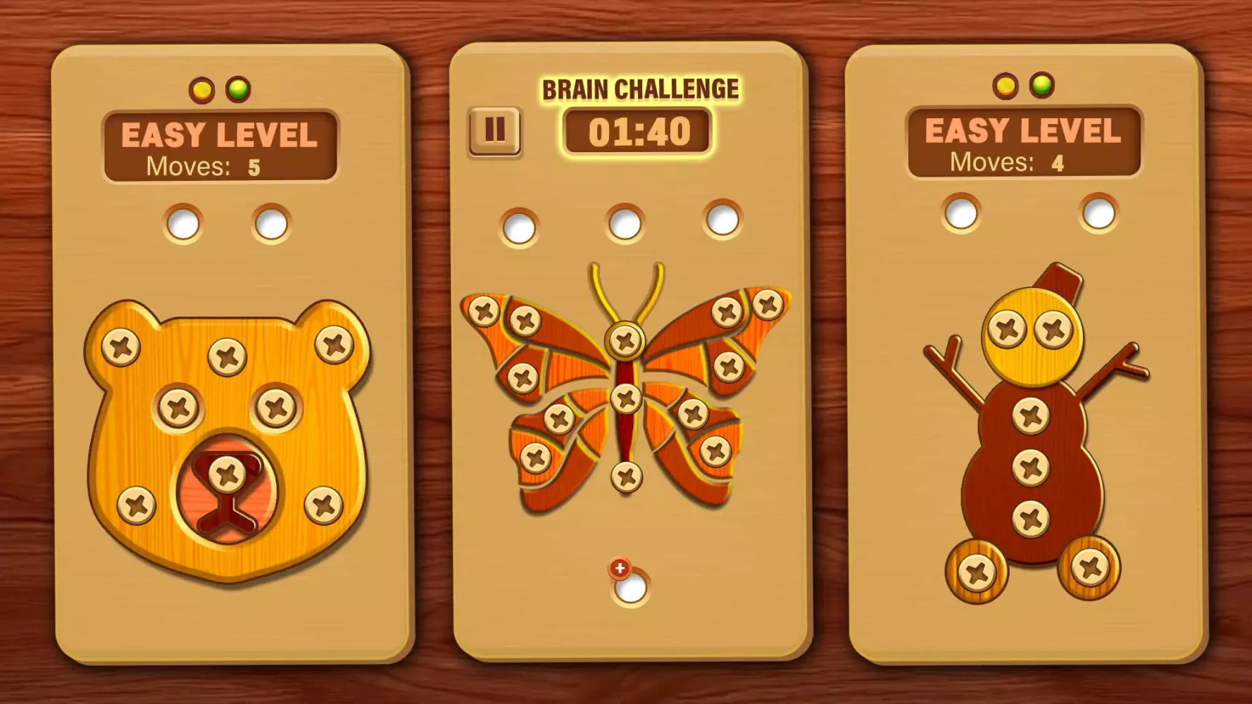 This captivating "Unscrew Wood Nuts & Bolts, Screw Pin" puzzle game tests your problem-solving skills as you navigate through increasingly challenging wooden puzzles. Each level introduces more elaborate and deeply satisfying complexities, enhancing your IQ as you untwist wood nuts and hone your quiz-solving abilities.