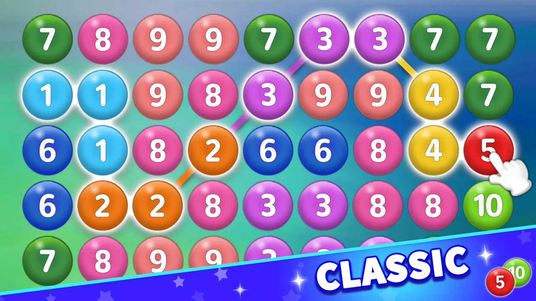 - Slide & Connect: Slide and connect same number bubbles in any direction (up/down/left/right/diagonally).