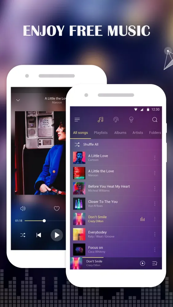 - Versatile File Format Support: Free Music supports all popular music file formats including AAC, AMR, FLAC, MP3, MIDI, PCM, WAVE, and more, ensuring compatibility with your existing music files.