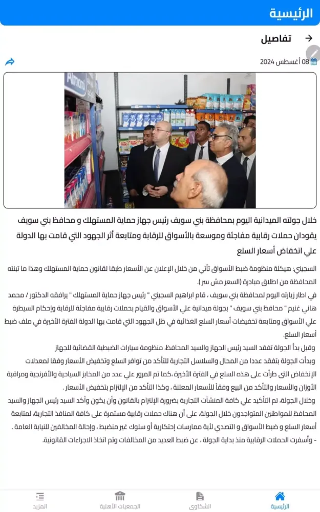 In addition to these core functionalities, the application provides valuable resources such as detailed information and advice about goods and services available in the Egyptian market. This includes product specifications, consumer rights, and mechanisms for filing complaints. The application keeps users updated with the latest news and activities of the Consumer Protection Agency, including details of ongoing market inspection campaigns and alerts regarding unsafe products.