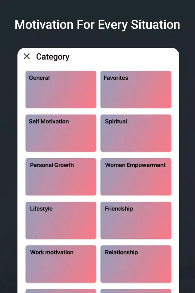 Our app is designed to help you cultivate new habits and boost productivity. With a curated collection of positive reminders, it encourages self-care and love in your daily routine. The app also includes workout reminders to help you maintain healthy habits. For women seeking to elevate their self-esteem and self-care, our app provides the best motivational quotes tailored specifically for them.