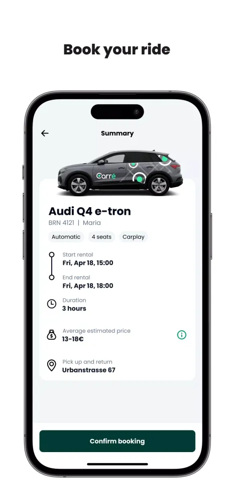 With its diverse fleet of electric vehicles, Carré caters to a wide range of needs. From short trips around your community to longer commutes, the app ensures that you always have access to the right tool for the job. Whether you're a student navigating campus, a professional traveling to meetings, or someone simply looking to reduce their carbon footprint, Carré offers a personalized experience that aligns with your lifestyle. The intuitive interface makes booking a breeze, allowing users to select their vehicle type, departure time, and location with just a few taps.