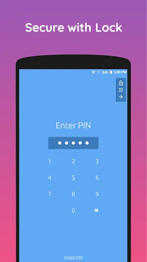 This feature helps to lock your app with 6 digit PIN code or Pattern to keep your diary secret. There is also a backup feature that lets you set your own secret questions and answers in case you forget the PIN or Pattern.
