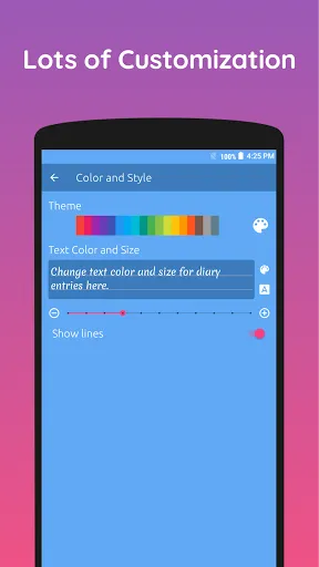 The UI is simple and neat with cool animation features for a better look and feel of the app. It provides a more professional experience. You can change the color of your diary and font, size of the font. Also, there are a lot of fonts to choose from, that you will love to try it out.