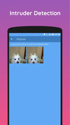 Capture a picture of an unauthorized person who is attempting to unlock your diary with an invalid password. Camera permission is required for this to work.