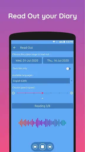 Want the app to read out your diary for you? You can always use this feature to read out all your entries in your own language.