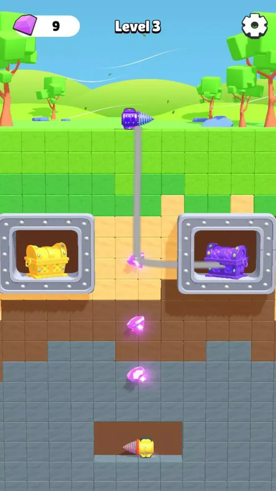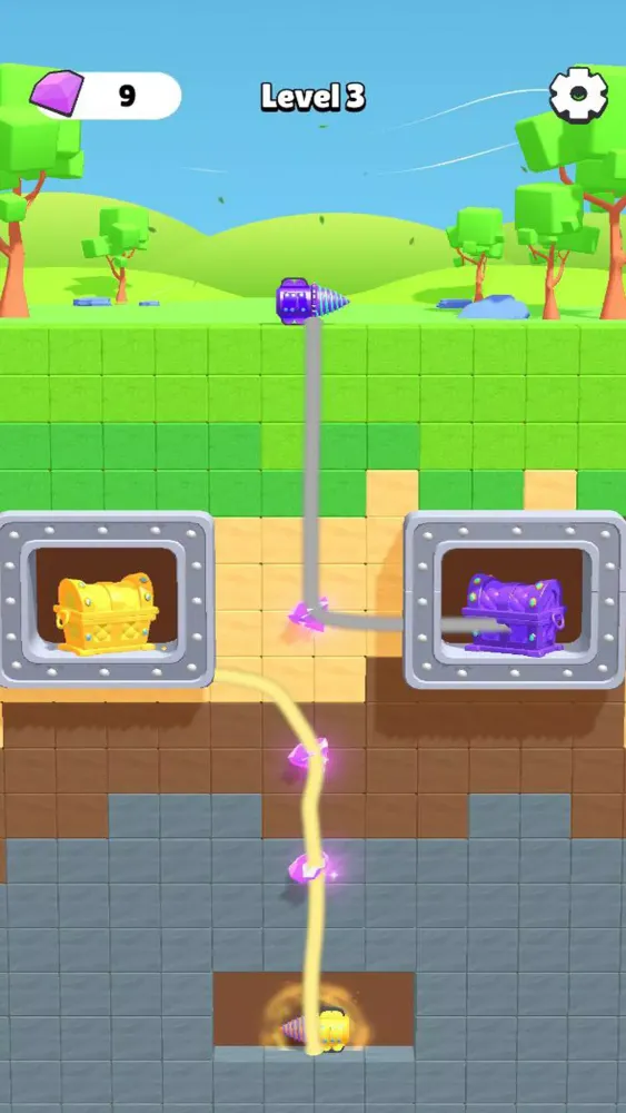 The concept is straightforward: guide your drill to reach the treasure chest by drawing a path. However, mastering this game requires more than just a steady hand. Each level introduces new challenges, pushing your skills to the limit. Navigate through intricate mazes, avoid deadly traps, and collect valuable resources like ores and crystals. These resources aren’t just for show—they unlock cool skins for your mining car, adding a layer of customization and personalization.