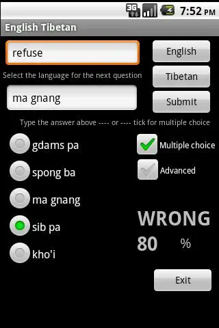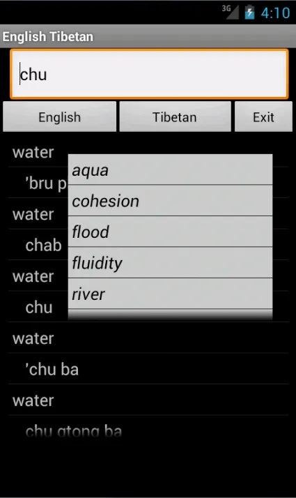 English Tibetan Dictionary (romanised) – travel dictionary to translate English to Tibetan displaying a list of words in romanised Tibetan. The dictionary also translates from phonetic Tibetan to English. Copying a word from the translated list for a reverse translation can be used to find synonyms and to understand the broader use of the Tibetan word in the English language. Although the English Tibetan dictionary does not provide definitions or examples, the use of the translation software in this way provides you with a mechanism to better understand Tibetan words in the English context without the need for definitions. 40K references.