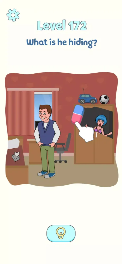 The "Erase It Now! Brain Teaser" is an engaging and innovative mind game designed to challenge your logical reasoning and creative thinking. The core concept revolves around using logic to erase specific parts of images to solve intricate puzzles. Whether it's saving a girl, catching a thief, or identifying an impostor, each level presents a unique and captivating challenge.