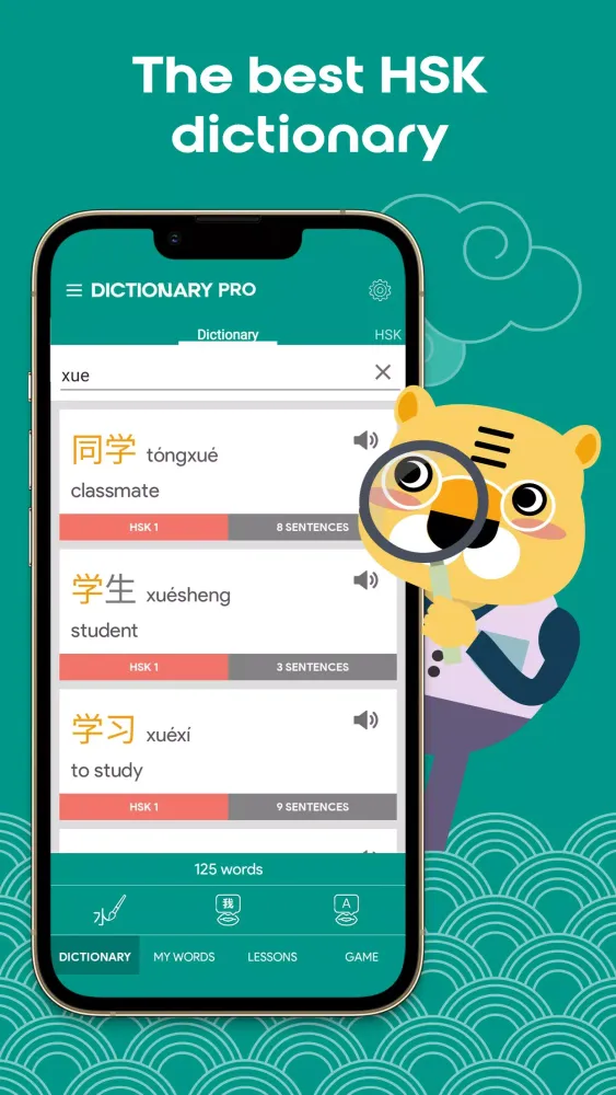Learning Chinese can be a challenging yet rewarding experience, and Chinesimple Dictionary aims to make this journey easier with its comprehensive features. With the help of our tutor, Bingo, you'll have access to a full dictionary that includes all HSK words and over 100,000 additional words, all translated and organized to accelerate your learning process.