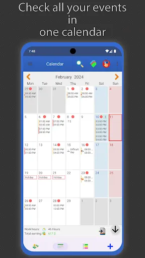 Multiple Jobs: Add how many jobs do you want with different colors and notes and distinguish the events into the calendar At a glance!