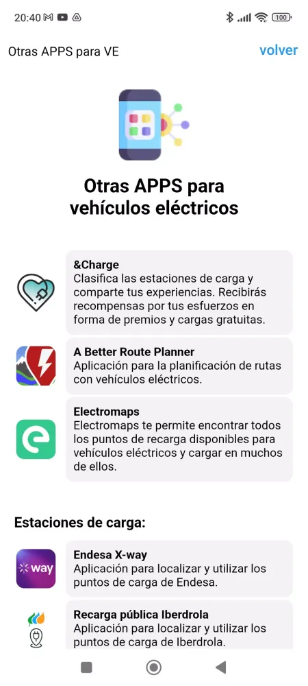 In addition to these core functionalities, Mi Coche Eléctrico integrates seamlessly with other apps that are equally beneficial for EV enthusiasts. Route planners and public charging apps are just a couple of examples of how the app enhances your overall driving experience. For those who use Android Auto, the app ensures that the map of charging points is easily accessible during your travels.