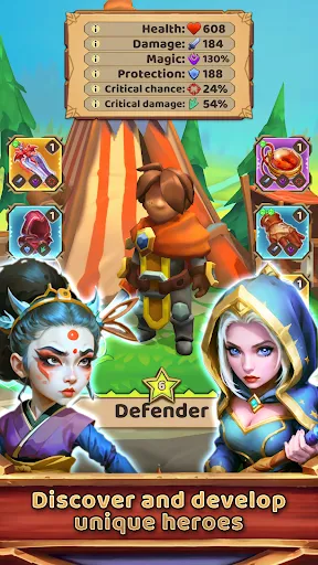 Get new cards, ammunition, heroes and develop your kingdom. Build a deck and fight many monsters. Explore a new world that you found yourself in by a strange accident. Find a way to defeat the ruler of the new world and protect the kingdom.