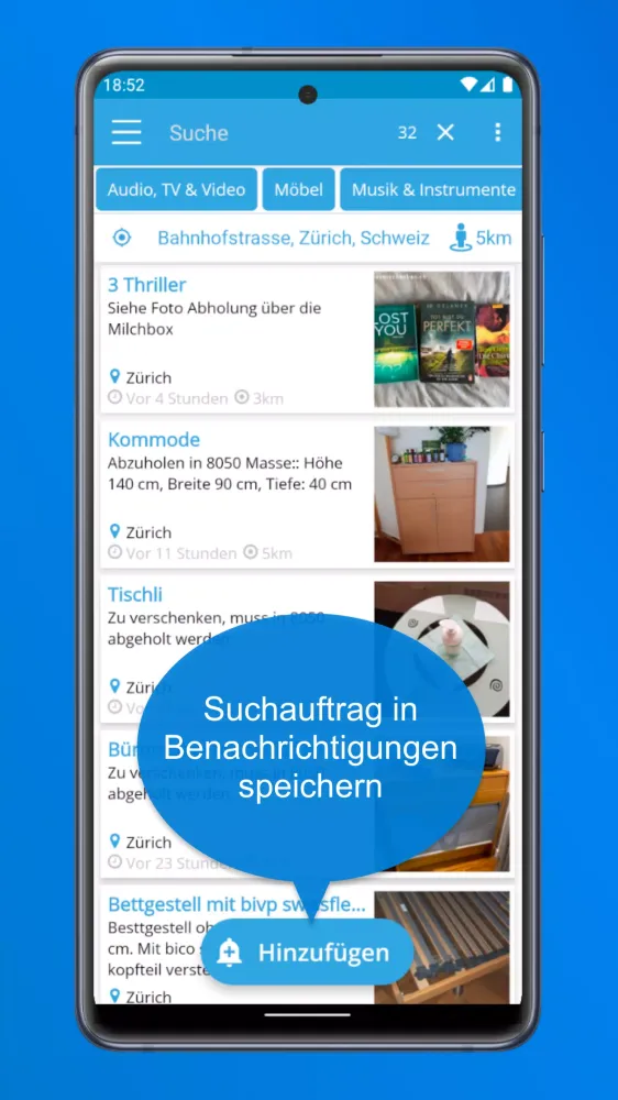 Find the Latest Listings: Search for items available in your area using keywords, categories, and location filters. The app supports a radius of up to 3000 kilometers, allowing you to discover items near you or even further afield if needed.