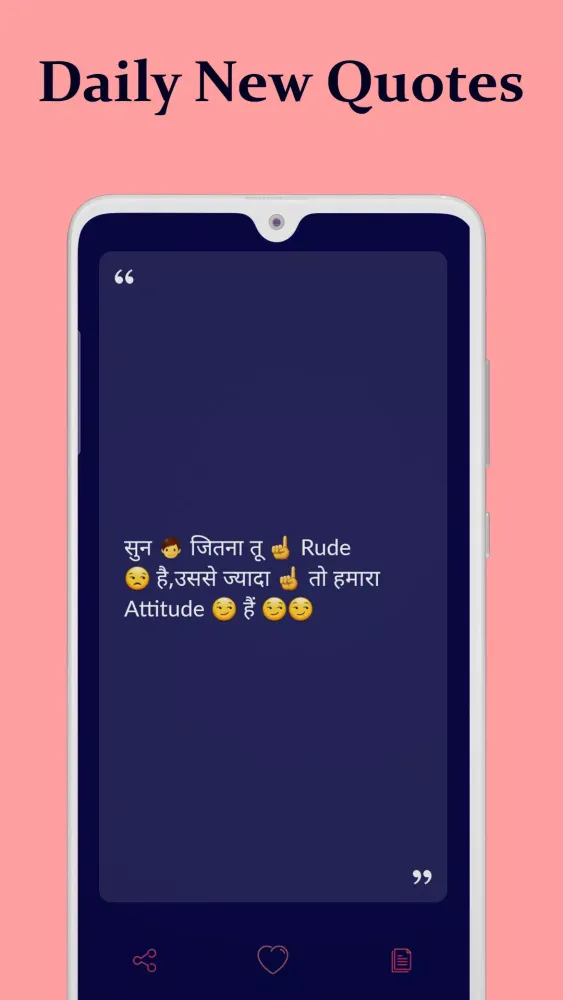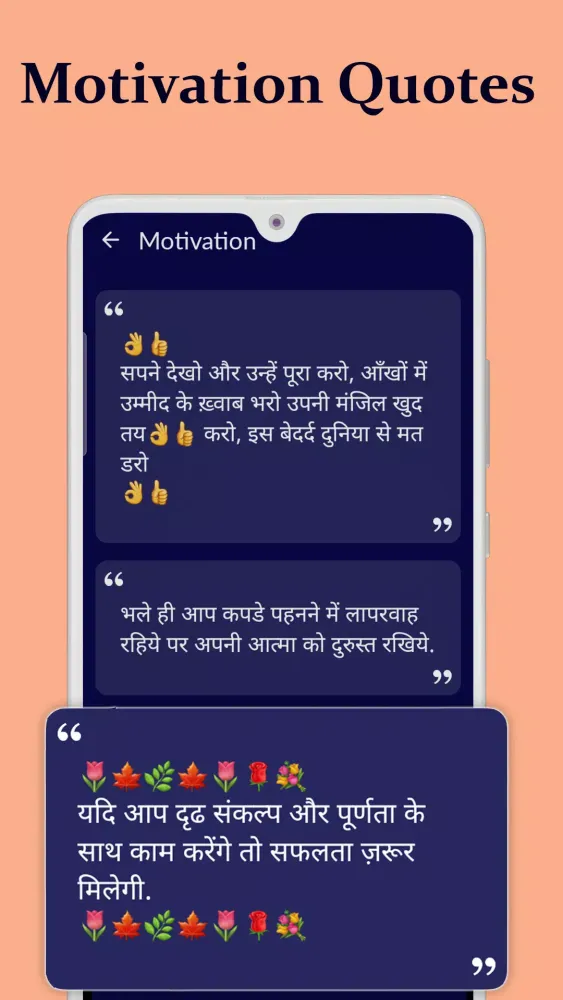 Our app is designed to provide you with a wide range of motivational and inspirational quotes that are updated daily. Whether you're feeling down or just need a boost of positivity, our collection of quotes and shayari (poetry) will uplift your spirits and help you maintain a positive mindset.